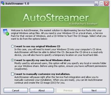 AutoStreamer has been released and is availabe for download from the "Download" page. I have just added instructions that are straight from the author (Raptor). If you do have question please email me or post to in the forum. AutoStreamer is an application that makes slipstreaming easier, it is menu driven and includes many features that will help make sure your CD is created properly.